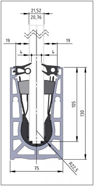 - Prévoir une hauteur de verre dans le profil de 105 mm
