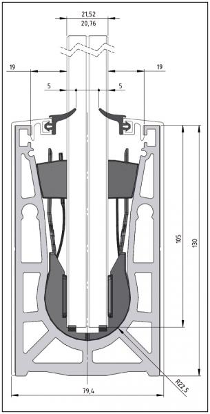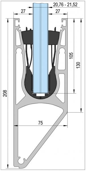 - Prévoir une hauteur de verre dans le profil de 105 mm