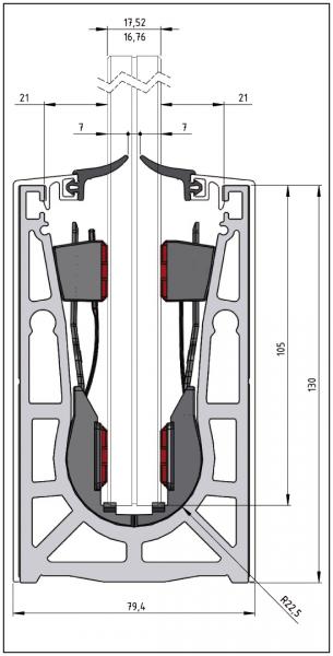 - Prévoir une hauteur de verre dans le profil de 105 mm