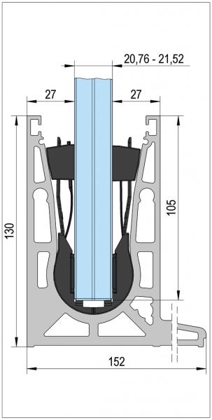 - Prévoir une hauteur de verre dans le profil de 105 mm