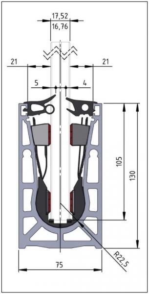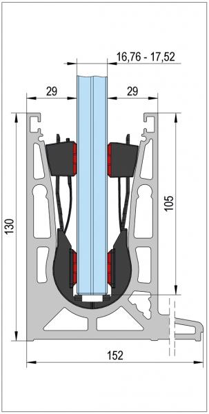 - Prévoir une hauteur de verre dans le profil de 105 mm