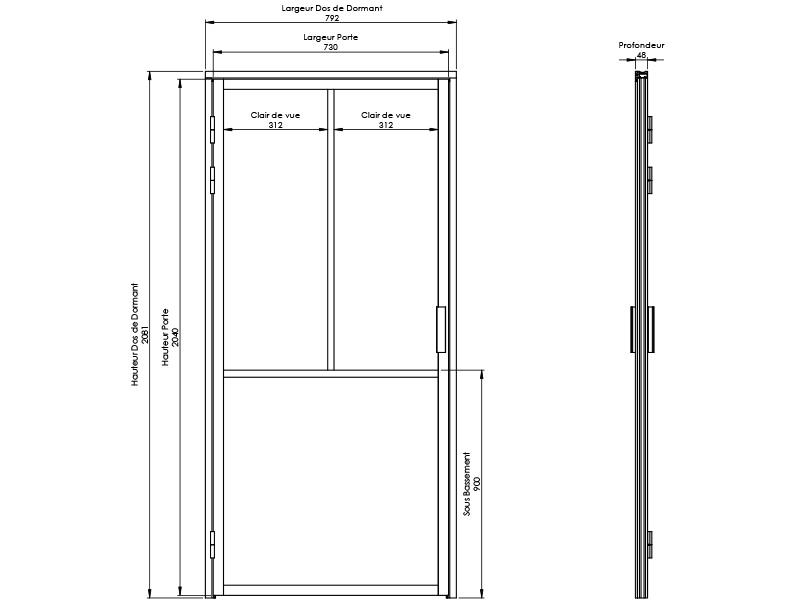 - Dormant de porte complet épaisseur : 48 mm.