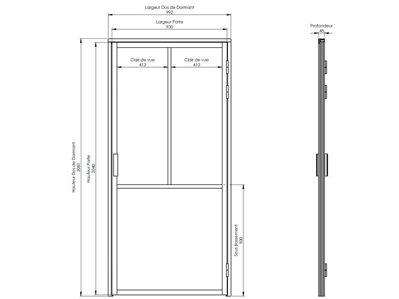 Porte Battante Tirant Droit Blanche avec Allège _ 930x2040