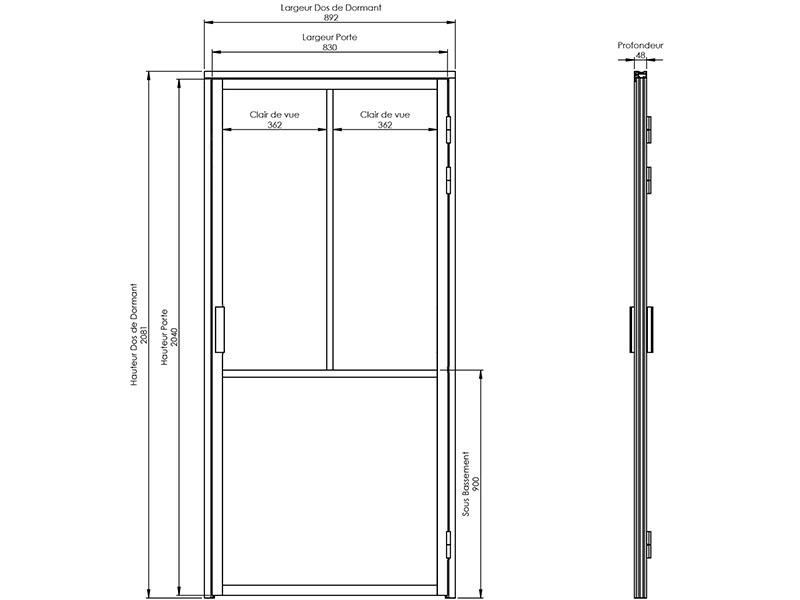 - Dormant de porte complet épaisseur : 48 mm.