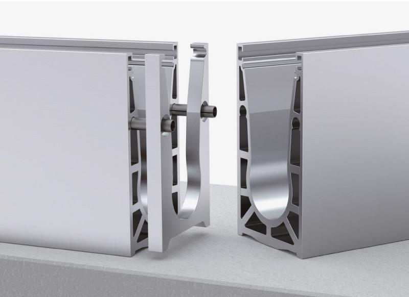 Pour un système de garde-corps extérieur en montage au sol, il est nécessaire de placer entre les profils un raccord intermédiaire de drainage, qui permettra aux surplus d’eau de s’écouler plus rapidement.